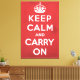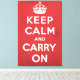 Keep Calm and Carry On var en poster som den brittiska regeringen gjorde 1939 i början av det andra Världskriget och som syftade till att höja den brittiska allmänhetens moral i händelse av invasion. Behåll lugn och fortsätt med tecknad