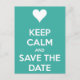 Behåll lugnet och spara datum Blå Meddelande Vykort