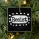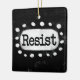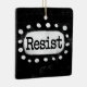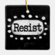 Fet text som läser "Resistent" centreras mot en svart bakgrund. Den svarta texten sitter på en vit rektangel med stora texturerade vita punkter runt den, vilket ger en lekfull kontrast mot den heltäckande bakgrunden i färg.