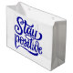 Den här teckningen innehåller en fras som uppmuntrar någon att förbli positiv.