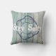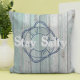 Beach themed dekorativ kudde har blåfärgat trä mönster som ser ut som om det räddades från ett västerländskt strandstuga med marin livskonserver ring konturteckning och övertäckning av anpassadet "Stanna Salty"-text i ett hårt vitt teckensnitt.