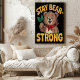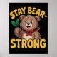 Denna upplyftande illustration visar på en glad björn som håller ett litet gren med grönt löv. Björnen bär en röd bandana, vilket gör att den ser ut som en charm. Texten "Håll björnen stark" omger björnen och skapar ett uppmuntrande och motiverande tema. Den pulserande designen ger en känsla av återhämtningsförmåga och positivitet, perfekt för att förmedla ett budskap om styrka och uthållighet.