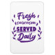 Storlek: 4 x 6 tum Flex stil med anpassningsbar flexibla magneter från Zazzle! Perfekta för kylskåp eller andra magnetiska ytor, de vinyllaminerade magneterna kommer bli jättesnygga med dina bilder, text eller design tryckta i starka klara färger. Stain- och vatten-resistenta, våra högkvalitativa magneter är designade att hålla sig kvar under en livstid. Storlek: 4 x 6 tum Vibrant, fullt-färg-utskrift Flexibel vinyllaminationskontur till böjd yta Vatten och fläckbeständig Designer Tip: För att säkerställa högsta kvalitet på utskriften, observera att denna produkts designområde för anpassade mäter 3,75 x 4,75 tum. För bästa resultat bör du lägga till utfall på 1/8 tum.