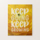 Njut av roligten med det här söt pusslet som innehåller ett foto av en gult-butterskopblomma och det positiva citatet "behålla går behålla växande".