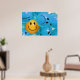 En inspirerande poster som skildrar en leende gult boll i ett hav av blått bollar och som visar hur viktigt det är att bevara en känsla av optimism och humor.