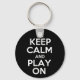 Behålla Lugn and Play On - Fält Hockey Nyckelring