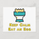 När det gäller ägg fläkt visar en Behålla Lugn och Ät ett ägg ett öppet ägg i blå stripy ägg kopp med Lugnen "Behålla" under. En äggdesign för roligtar som i lugn och ro äter ägg.