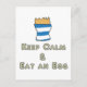 När det gäller ägg fläkt visar en Behålla Lugn och Ät ett ägg ett öppet ägg i blå stripy ägg kopp med Lugnen "Behålla" under. En äggdesign för roligtar som i lugn och ro äter ägg.
