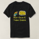 Behålla Lugn Cheese Pun har Thinkers tankar på ost i en stor tankbubbla. Stickmen frogade i och på osten. Under ord står "Behålla Lugn & Tänka Cheese". För fläkt av ost.