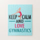 Lustigt Behålla Lugn och Kärlek Gymnastikpussel i vackra teal. En söt gymnast-gåva från humor till en gymnastiktränare eller flicka som kärlek tumlar i ett söt rosa-leotard.