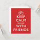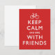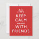Behålla Lugn och Bike med vänner. En roligts- och fitnessorienterad variation av WW2 poster "Håll lugn och fortsätt". En vit bild av en cykel med vit text över rött. En cyklist i grattis på födelsedagen, rolig och söt inbjudan att cykla med vänner!