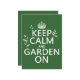 Det står Behålla Lugn och Garden On, i stilen av lugnen för klassisk behålla poster. Löv växer från brev. Det är en vacker, enkel design som gör ett vackert sortiment av produkter för trädgårdsmästaren i ditt liv.