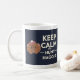 Behålla Lugn och Hunt Haggis slogan kaffe kopp mugg med Cute Haggis bär en tartanhatt. Det här är en säljfrämjande t-shirt till springa med Reiver's View on the Carter Pub Vild Haggis Hunt. Ett skotskt Theckes-kaffe mugg