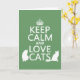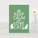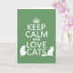 Detta är den klassiska poster "Håll lugn och fortsätt" i krig, omformulerad till "Behålla Lugn och Kärlek Cats". Den är skriven i vitt på färgadens bakgrund och åtföljs av silhuetter av katter sitta nära ord. De finns på ett stort antal produkter, bland annat anteckningsblock, klistermärken, knappar, påsar i bok och t-shirts, och de gör underbara presenter/presenter/treats för kattälskare och -ägare, eller tack vare presenter för veterinärer och cateringägare. Alla bakgrundsinställningar i färg är lätta att anpassa efter dina egna önskemål.