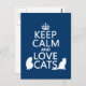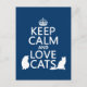 Detta är den klassiska poster "Håll lugn och fortsätt" i krig, omformulerad till "Behålla Lugn och Kärlek Cats". Den är skriven i vitt på färgadens bakgrund och åtföljs av silhuetter av katter sitta nära ord.