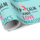 Lustigt Behålla Lugn och Kärlek Gymnastikgåva i vackra teal. En söt gymnast humor som är närvarande för en gymnastiktränare eller flicka som kärlek tumlar i ett söt rosa-leotard.