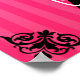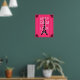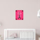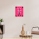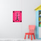 En svart silhuett från Eiffel Torn ligger på shock rosa. Uttrycket "behålla lugn och kärlek Paris" står i ett kontrasterande vitt typsnitt.