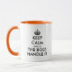Behålla lugn och låt chef hantera det roliga kaffepresentanten Mugg. Skapa din egen lustiga Behåll Calm och fortsätt parodi. Modern typografisk mall med krona. Roligt personlig kopp för hemmet eller kontoret. Lägg till egen anpassningsbar. Coola Födelsedag eller julklapp för chef, chef, VD, företagsägare, företagsledare, chef, chef, ordförande, bossy-vänner, familj, medarbetare, kollega, personal, anställda, företagsarbetare, personal osv. Orangens färgad handtag och inuti. Dubbelsidigt tryck. Även roligt för chef-dagen!