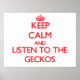 Behålla lugn och lyssna på Geckos Poster