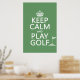 Detta är den traditionella poster som omformulerats till "Behålla Lugn and Play Golf". Utmärkt ord att leva efter! Det finns en liten flagga bredvid ord. Det är en populär design, älskad av golferer och golf fläkt. Den är tillgänglig för en mängd olika produkter och ger underbara gåvor och gåvor till golfentusiaster. Om du vill ändra bakgrunden trycker du på "anpassa" och väljer bland färg under sol. Om du har några frågor, eller vill ha några ändringar eller se en annan design, kontakta då min butik.