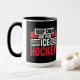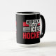 Hockey Tema mugg med svartvit, röd text som läser Behålla Lugn and Play Ice Hockey!