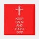 Med inspiration från det brittiska Världskriget II poster denna utformning, "Behållans Lugn och fortsätt", ett vitt kor och texten "Behållans Lugn och Trust God".