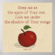 Den välkända Bibelversen talar om hur Gud kärlek oss "Behålla mig som äpplet från Er öga". Göm mig under vingarnas skugga."