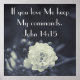 Den bibelvända poster finns på en svartvit blommigt med skript från John 14:15 "Denna bibelversa mugg kommer från skript. "Om du kärlek Me behålla Mina kommandon."