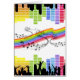 Vektorillustration av en musikalisk bakgrund med silhuett av människor som dansar. Färgfull teckning i party poster.