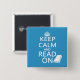 Denna är klassikern "behållalugn och bär på" krigaffischen, reworded "för att hålla lugn och läsa på". Den har skriftligt i vit på färgad bakgrund och medföljs av en silhouette av en bok till en sida.
