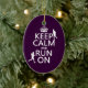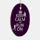 Denna design läser "behållalugn och springa på" i stilen av affischen för klassikerbehållalugn, däribland kronan upptill. Det finns silhouettes av två figurer som är rinnande över breven. Underbart som gåvor eller fester för någon som är i utbildning eller älskar för att köra. Underbar presenter för lagledarear och tränare.