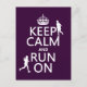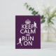 Denna design läser "behållalugn och springa på" i stilen av affischen för klassikerbehållalugn, däribland kronan upptill. Det finns silhouettes av två figurer som är rinnande över breven. Underbart som gåvor eller fester för någon som är i utbildning eller älskar för att köra. Underbar presenter för lagledarear och tränare.