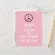 Om ni tror på kvinnornas makt är vår Behålla Lugn och Rösta Anpassningsbarnas Rosa Postcards en coola som påminner om sinnade vänner att komma ut och rösta för att stödja din favoritkandidat! Motiv för LUGN av klassisk BEHÅLLA gått med med fredstecken inspirerad av parodinspirerade designfunktioner. Anpassa enkelt genom att lägga till ditt personlig-meddelande på baksidan utan att det finns några tillgängliga extra-rabatter! <em>Volymrabatter! a)