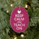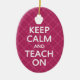 Söt Fuchsia magenta rosa gav bakgrunden med vit "lugn och undervisning i behålla"-text, en ny och feminin gåva till den kvinnliga läraren för att ge motivation och inspiration från den klassiska "lugnen för behålla och fortsätt" British Wwii-propaganda. En underbar lärarkänslogåva. Copyright © www.CuteComfy.com
