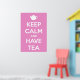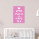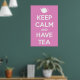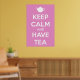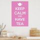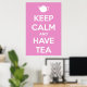 En söt twist på en vintage WW2 British motivational poster i mjuk rosa med skarp vit text och tekanna.