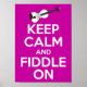 Panik, Behållans lugn och Fiddle på! En underbar gåva till spelmän, violinister och älskare av musik. Visa upp det här vid din session eller i din orkesterrepetition eller ge som en present till en musiker. En lustig version av den populära krigstiden poster, den här har en fiol på en fuschia rosa-bakgrund med ord "Behålla Lugn and Fiddle On"