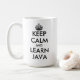 Behållans lugn och lära sig Java lustiga programmerares Kaffe Mugg. Anpassningsbar behålla lugn och fortsätt med mallen med krona. Gör ditt eget humoristiska memorancitat. Roligt födelsedag för software ingenjör, företagskollega, medarbetare, chef, chef, anställd, bästa vän, chef, chef, personal, personal, konsult, IT-specialist, databasadministratör, datavetekniker, datavetekniker osv. Anpassningsbar färg kopp.