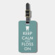 Behållans lugn och påfylls på bagagetaggen med tandad logotyp. Anpassa resväskor och resväskor. Utformning av vintagen för anpassade för resenärer. Teal eller någon anpassningsbar färg. Skapa din egen lustiga Behålla lugn och fortsätt med tandvård parodi. Bakgrunden färg och texten kan ändras.