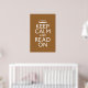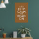"Behålla Lugn and Read On" poster. Du kan anpassa BACKGROUND färg genom att klicka på orangen "CUSTOMIZE IT" och ändra färg på "EDIT - change Background" (EDIT - ändra bakgrund)
