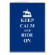 Modern ridor tar på sig den populära vintagen "behålla lugn & carry on" poster, med "ride on" text och en vit häst på blå bakgrund, besök CUSTOMIZEDGIFTS STORE för mer "behålla lugn" produkter.