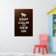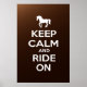 Behållans lugn och rid på produkten med vit färgad och mörkens bakgrund. En ändring av Behåll lugn och fortsätt