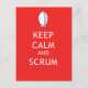 Perfekt gåva till rugby fläkt och spelare. Stil av den välkända brittiska propagandan WW2 "Keep Calm and Carry On" poster, krona ersätts av en rugby boll och slogan lyder "Behålla Lugn and Scrum".