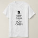 Behållans Lugn och spela schack för att skjortor för manar, kvinnor och barn. Skapa din egen personlig "Behålla lugn and fortsätt" parodi för schackspelare. Anpassadets malldesign. Lägg till ditt eget roliga citat eller säga valfritt. Finns även i svart med vit nattschack biet. Logotyp med vintage typografi. Cute Birthday eller Helgdag presentidé för vänner och familj som kärlek spelar schackspel. Anpassningsbar kläder med schackikon.