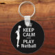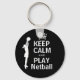 Anpassade, behålla lugn och spela nyckelring med nätboll med svart och vitt färg. Roligtens presentidé för netbollspelare eller fläkt.