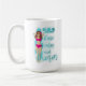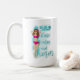 Behållans lugn och surfa på brunettflicka kaffemugg