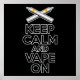 Vaper humor. Behåll lugn och fortsätt parodi med 18650 mod och ordspråket "Behålla Lugn and Vape On"