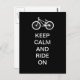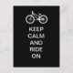 Den här roligten har en vit cykelsilhuett i svart bakgrund och texten "Behålla Lugn och Ride On".