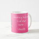 Behålla din sundhet med en liten bit humor, "Knitting behållas [ditt namn] sansat ... Vanligen" på en knitters mugg. Du kan lätt personlig med vilken namn som helst. Den har en ljusstark baksida av hallon, skuggad från ljus till mörk. och dekoreras på motsatt sida med boll av färgad och stickande nål.