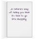 "Känns som om kopp bara är en halv fullt... Det är naturens sätt att säga att det är dags att gå bra och shoppa." Det här söta kortet, med en illustration av Susan M. Epperly, är perfekt för en speciellare hjärtlös person som behöver lite söt uppmuntran. Se till att kolla in Tiger Lily Studios kompletta linje, inklusive en samling underbarare redskap och andra gåvor till Massage Professionells! Illustration ©2002 Susan M. Epperly (www.TigerLilyStudios.com) Card design ©2016 Susan M. Epperly http://www.zazzle.com/TigerLilyStudios?rf=238891780775066757