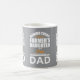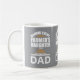 Honor the special bond between a farmer and his daughter with this "Behind Every Great Farmer's Daughter Is A Truly Amazing Dad" coffee mug. Featuring a rustic blue background with bold yellow and white typography, this high-quality ceramic mug is a perfect gift for Father's Day or a birthday. The design is repeated three times around the mug for full visibility. A meaningful way to show Dad he's the foundation of your hard-working family.